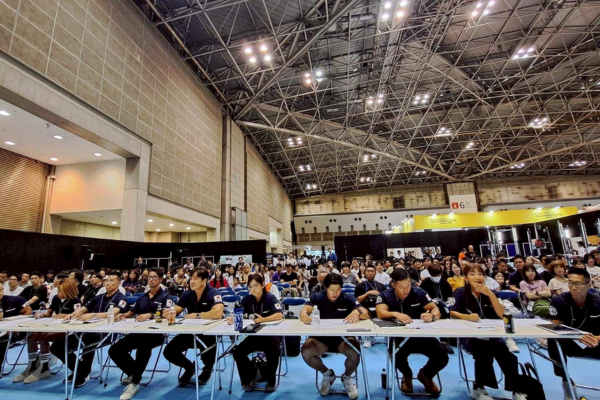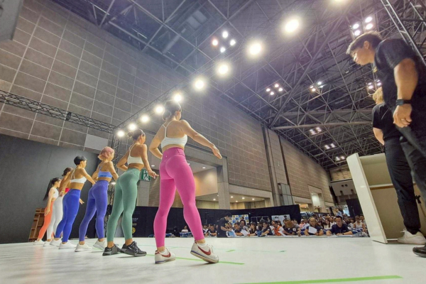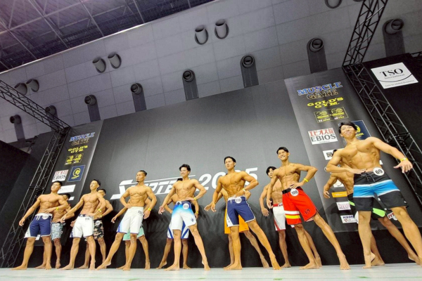 大会は東京ビッグサイト内の特設ステージで行われました。大会名となったスポルテックはアジア最大級のフィットネス関連展示会。業界関係者の来場も多数で、満員の観客席から大きな声援が送られていました。