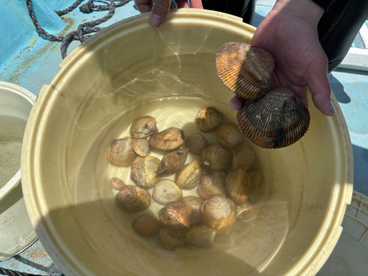 長谷川は、漁協をはじめとした地元の水産関係者や町役場、NPO、県などの支援を得ながら、独自の試行錯誤を重ね、着任から1年という短期間で種苗の生産に成功。これにより、町内4か所(横浦、指ヶ浜、尾浦、小乗浜)での養殖が2025年7月から本格始動しました。また、現時点で8月の3週目にも各浜への稚貝の沖出しを予定しています。順調にいけば、来夏には、女川初となる養殖トリガイの水揚げが期待されています。