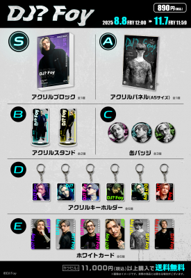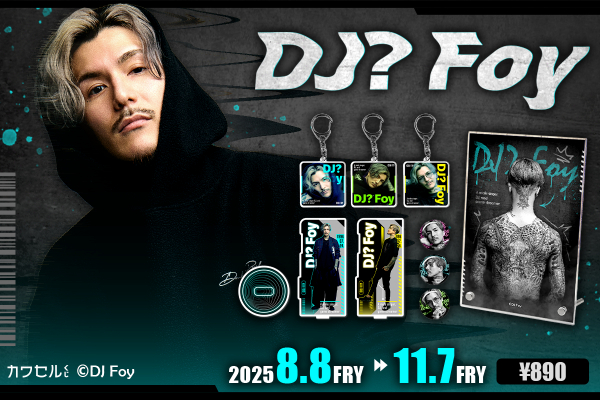 「DJ? Foy」の最新プロフィール写真や、初公開のカットを贅沢に使用したグッズのオンラインくじが新登場!