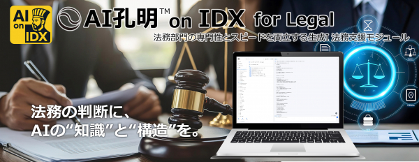 こうした中、 私たちは、 生成AIと統合データプラットフォームを融合した次世代プラットフォーム「AI孔明 on IDX」の法務向けモジュールとして、 『AI孔明 on IDX for Legal』をリリースいたします。
