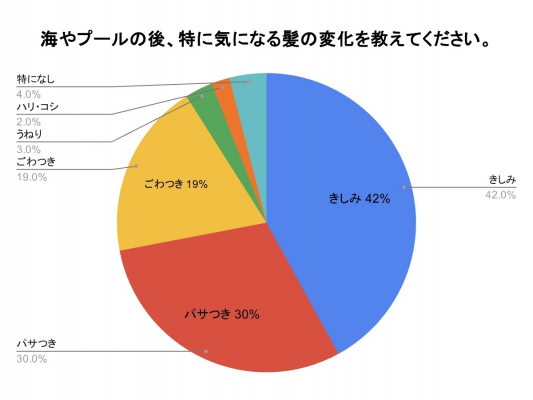 ■海やプール後の髪の変化、特に気になるのは"きしみ"が最多