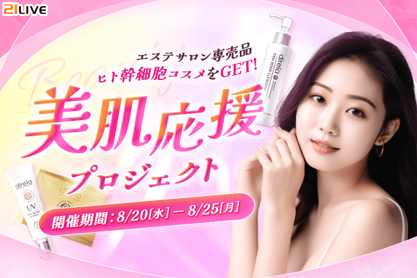 株式会社エムアンドティーティー(本社:沖縄県北谷町、代表取締役:井藤 三知子)が運営するエンターテイメント・ライブ配信アプリ【21LIVE(ニーイチライブ)】URL: https://21.live では8月20日(水)より『美肌応援プロジェクト』を開催いたします。