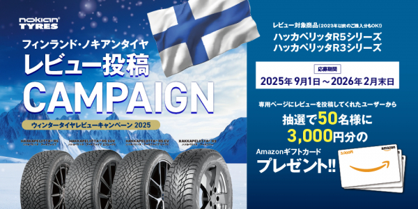 この度株式会社阿部商会(本社:東京都千代田区、代表取締役:阿部 文保)では、2025年9月1日から 2026年2月末日までの期間『ノキアンタイヤ・レビューキャンペーン2025』を実施いたします。