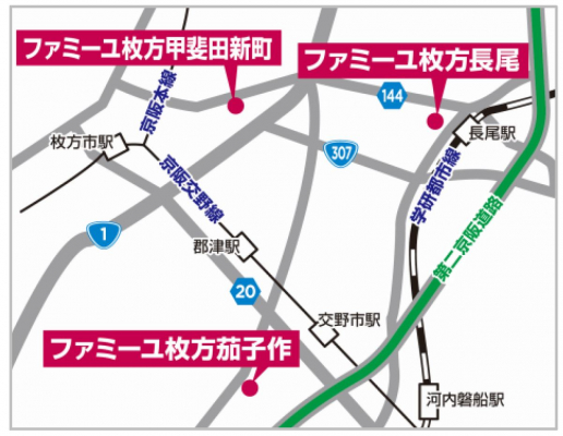 (地図)大阪府枚方市内では3店舗の展開となる