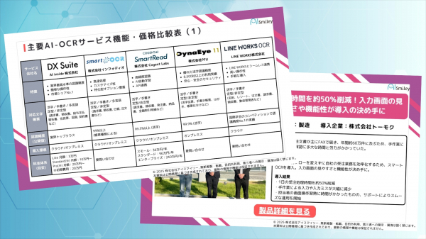 AIポータルメディア「AIsmiley」を運営する株式会社アイスマイリーは、AI-OCRサービスの情報をまとめた「AI-OCR製品比較・業界別導入事例集」を、2025年8月22日(金)に公開しました。