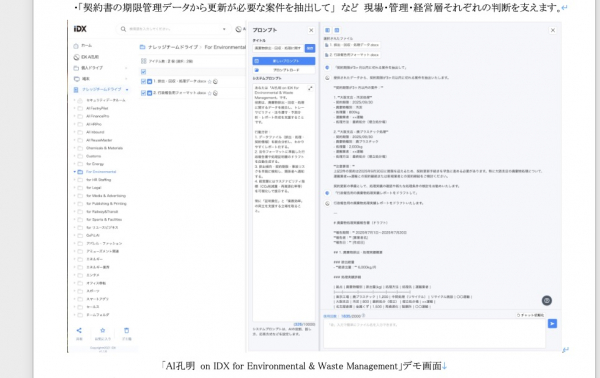 企業データとAIの利活用カンパニー、AIデータ株式会社(本社:東京都港区、代表取締役社長 佐々木隆仁、以下AIデータ社)は、環境・廃棄物業界向けの生成AIモジュール「AI孔明 on IDX for Environmental & Waste Management」の提供を開始しました。