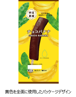 この度、「田辺農園バナナ」の規格外品にチョコレートをコーティングした冷凍『チョコバナナ』が誕生しました。棒付きのスティックタイプで、手軽にお召し上がりいただけます。