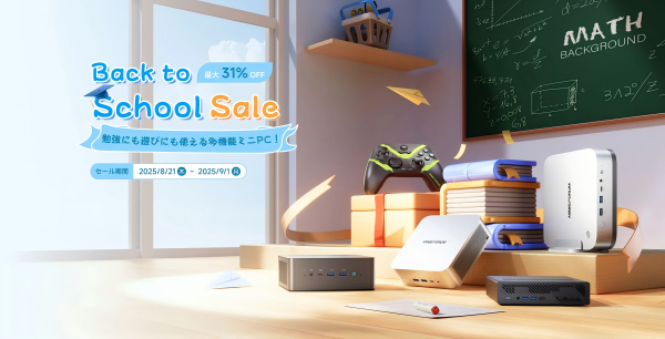 2025年8月21日(木)から9月1日(月)までの期間、MICRO COMPUTER (HK)TECH LIMITEDが運営するミニPCメーカーのMinisforum(ミニーズフォーラム)は、Minisforum日本公式サイト(https://store.minisforum.jp/)にて「BACK TO SCHOOL セール」を開催いたします。学生やビジネスユーザーに最適なAI対応ミニPCや人気の高性能モデルを特別価格でご提供いたします。
