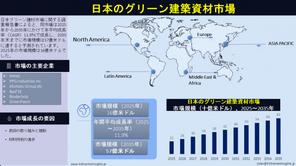 詳細な市場分析はこちらをご覧ください: https://www.kdmarketinsights.jp/report-analysis/japan-green-building-materials-market/664