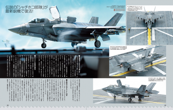 「タミヤ 1/72 F-35A」「ハセガワ 1/72 F-35A(第302飛行隊50周年記念塗装機)」「アカデミー 1/72 F-35B(護衛艦かがへの搭載を想定した架空塗装)」などに加えて、模型専門誌「月刊ホビージャパン」で掲載された模型メーカー各社の1/48・1/72「F-35A」「F-35C」など、最新のステルス戦闘機について掘り下げます。さらに第302飛行隊創設50周年記念塗装が施された「F-35A」の実機写真も掲載!