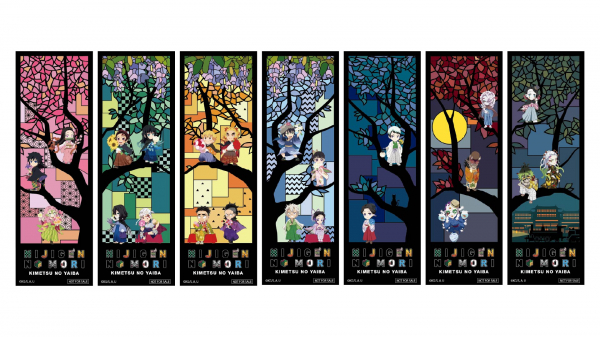 この度、「謎解きウォーク 花降る里と幻の鬼巡り」または「ナイトウォーク 無限城への軌跡」へご来場いただいた方への来場特典ノベルティの第4弾として、ufotable描き下ろし新規イラストがデザインされた「オリジナルクリアしおり」をお渡しいたします。ニジゲンノモリ×アニメ『鬼滅の刃』コラボグッズを販売しているショップの外装をモチーフにしたステンドグラス風の透け感があるデザインとなっています。全7種ランダムで、無くなり次第終了の数量限定オリジナルノベルティです。