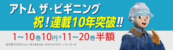 さらに8月29日(金)から9月11日(木)まで、10周年記念キャンペーンの第2弾「祝!『アトム ザ・ビギニング』連載10周年突破!大好評につき10円セール第2弾!」を各電子書店で開催いたします。