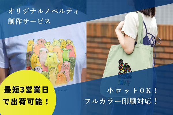 このサービスでは、最短3営業日での出荷が可能なトートバッグ・エコバッグ・巾着・ポーチ・Tシャツなどを中心に、フルカラー印刷(DTFプリント)に対応。1個からの小ロット発注にも対応し、展示会、店舗オープン記念、学校・保育園イベント、法人キャンペーンなど多彩な用途に対応します。
