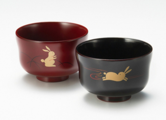 【京都漆器】夫婦汁椀 うさぎ 溜・古代朱 2客セット 漆塗り