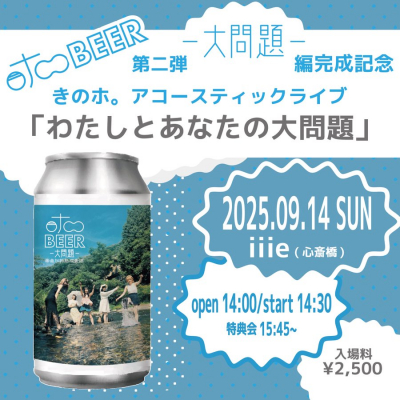 本商品は、2025年9月14日(日)に開催される「ホ。BEER第二弾~大問題~編 完成記念 きのホ。アコースティックライブ『わたしとあなたの大問題』」にて先行発売される予定となっています(開催場所:iiie(心斎橋アメリカ村)/ 大阪市中央区西心斎橋2-9-32 アローホテルB1)。先行発売後、三谷商事株式会社のオンラインショップや関連飲食店にて発売予定となっています。ライブチケットはただいま発売中です(売り切れの際はご容赦ください。)。
