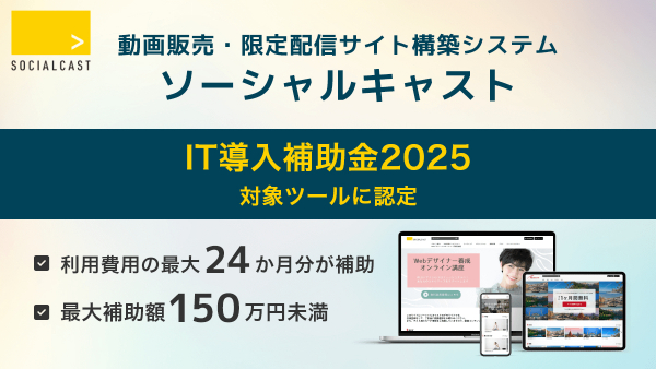 動画販売・限定配信サイト構築システム『ソーシャルキャスト』が、「IT導入補助金2025」の対象ツールに認定されました。