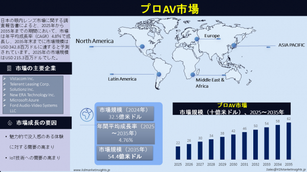 詳細な市場分析はこちらをご覧ください: https://www.kdmarketinsights.jp/report-analysis/pro-av-market/635