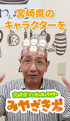 食品添加物無添加・国産食材100%を使った、冷凍「美食弁当」を代表自ら、実食をしつつ紹介する為、7月より週に1回YouTube わんまいるチャンネルにてアップをはじめており、各ご当地のキャラクターを入れることで、地元のPRになればと考え、各地にキャラクター使用申請を行い、メイン食材を活用している自治体のキャラクターを付けながら紹介を行っています。第3回目は、宮崎県の日南どりを使ったメニュー「日南どりのチリソースセット」を、「みやざき犬(けん)」をかぶっての紹介します。