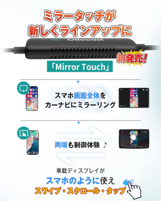 「OTTOCAST Mirror Touch」では、スマホ画面を映すだけでなく、ナビ画面から直接スクロール・スワイプ・タップといった操作が可能。運転中にスマホへ触れる必要がなく、視線移動を最小限に抑え、安全性と利便性が大幅に向上します。