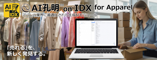 こうした状況に対応すべく、 私たちは次世代型生成AIプラットフォーム「AI 孔明 on IDX」のアパレル業界専用モジュール『AI孔明 on IDX for Apparel』 をリリースいたしました。