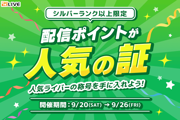 9月20日(土)から9月26日(金)の7日間、シルバーランク以上のライバーを対象とした特別イベント『配信ポイントが人気の証』を開催します。