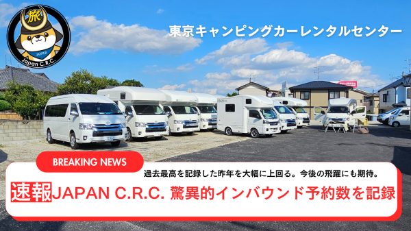 国内レンタルキャンピングカー大手「ジャパンキャンピングカーレンタルセンター(以下JAPANC.R.C.) https://japan-crc.com/」を運営するキャンピングカー株式会社(本社:東京都渋谷区、代表取締役社長:頼定 誠)は、2025年9月3日時点で、インバウンド顧客からのキャンピングカーレンタル予約数が、サービス開始以来、過去最高を記録したことをお知らせいたします。