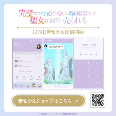 株式会社インクルーズ(東京都渋谷区、代表取締役社長 山﨑 健司)は、LINEヤフー株式会社が運営するコミュニケーションアプリ「LINE」内の着せかえショップにて、TVアニメ『完璧すぎて可愛げがないと婚約破棄された聖女は隣国に売られる』のLINE着せかえを2025年9月9日(火)に配信開始致しました。