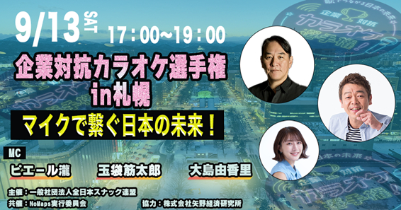 株式会社矢野経済研究所(以下、当社)は、2025年9月13日(土)に、「NoMaps2025」(※1)の特別会場にて開催される「企業対抗カラオケ選手権 札幌特別大会」の企画、運営に全面協力しております。