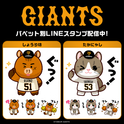 LINE着せかえでも大好評配信中の「読売ジャイアンツ」の選手パペットシリーズが、キャラクター別ver.のLINEスタンプとなって株式会社インクルーズの販売アカウントより配信開始いたしました。