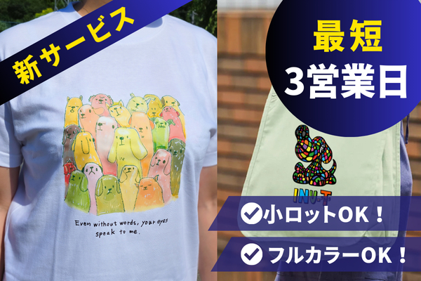 従来よりご好評いただいている名入れトートバッグやポーチ、Tシャツ、折りたたみ傘などの人気アイテムに対し、小ロット(1個~200個)・短納期での印刷対応が可能となります。