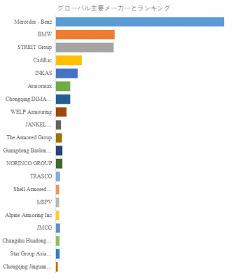 LP Informationのトップ企業研究センターによると、防弾車の世界的な主要製造業者には、Mercedes-Benz、 BMW、 Audi、 STREIT Group、 Centigon Security Group、 INKAS、 Armormax、MSPVなどが含まれている。2023年、世界のトップ5企業は約71.0%の市場シェアを持っていた。