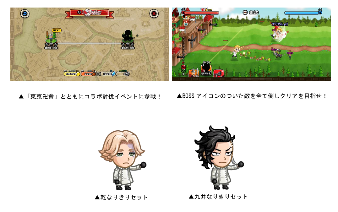 「バトル」の「SP討伐イベント」から、限定キャラ「東京卍會」を使用して挑戦できるSP討伐イベントを開催いたします。特定のステージをクリアして剣士用限定お着替え「乾なりきりセット」「九井なりきりセット」をGETしましょう。