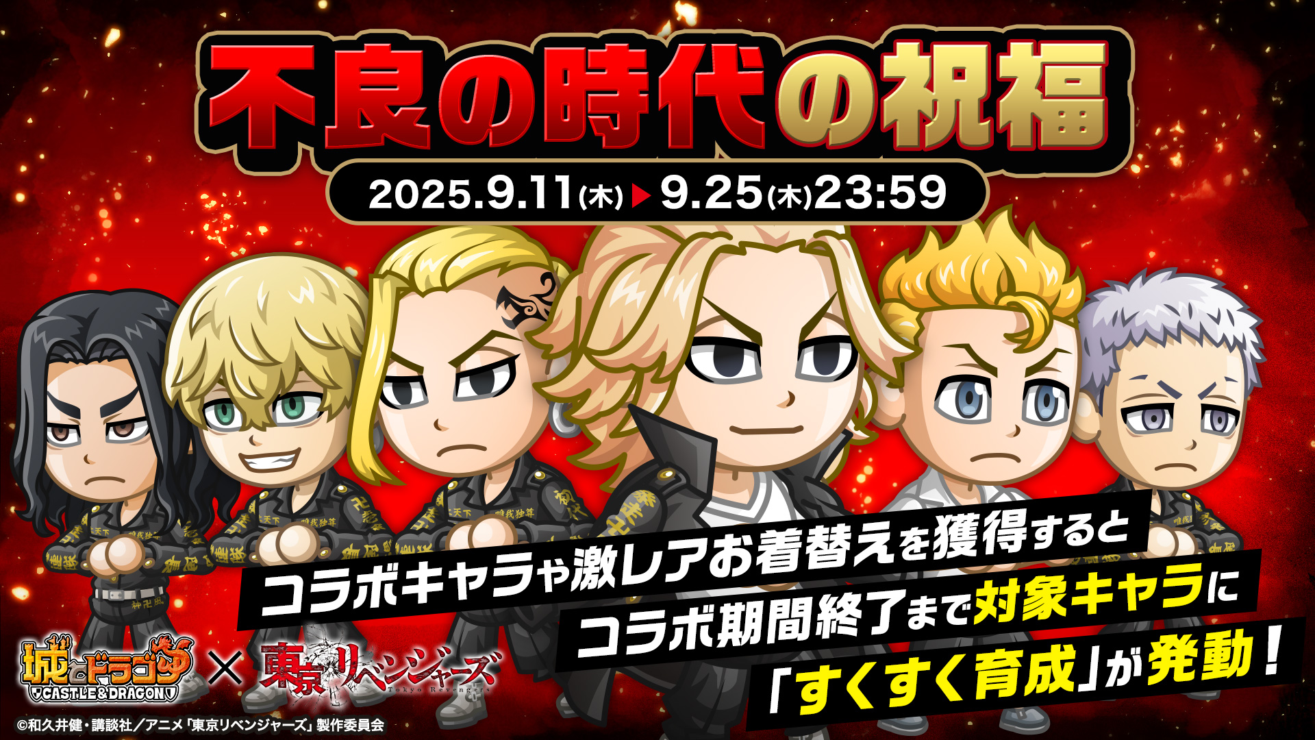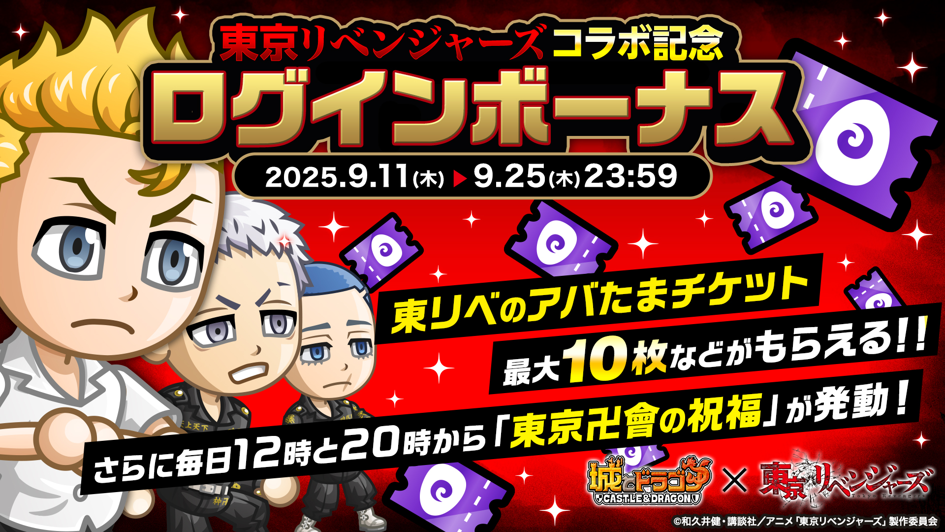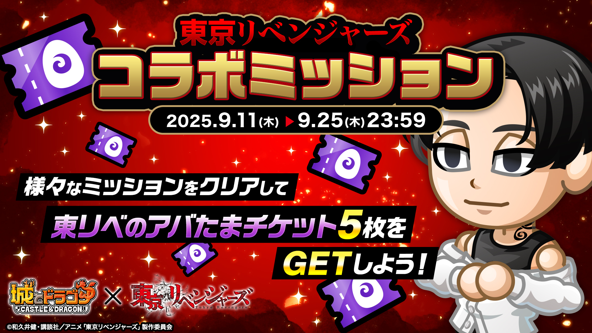 株式会社アソビズム(本社:東京都千代田区、代表取締役:大手智之)は、App Store・Google Playにて好評配信中の『城とドラゴン』で、TVアニメ『東京リベンジャーズ』との復刻コラボイベントを、2025年9月11日(木)より開催いたします。