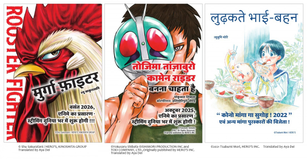 ・会場でアンケートに答えてくれた方に、『ニワトリ・ファイター』(著:桜谷シュウ)、『東島丹三郎は仮面ライダーになりたい』(著:柴田ヨクサル/協力:石森プロ 東映)、『転がる姉弟』(著:森つぶみ)の「ヒンドゥー語/英語版試し読み冊子」をプレゼント(先着限定)