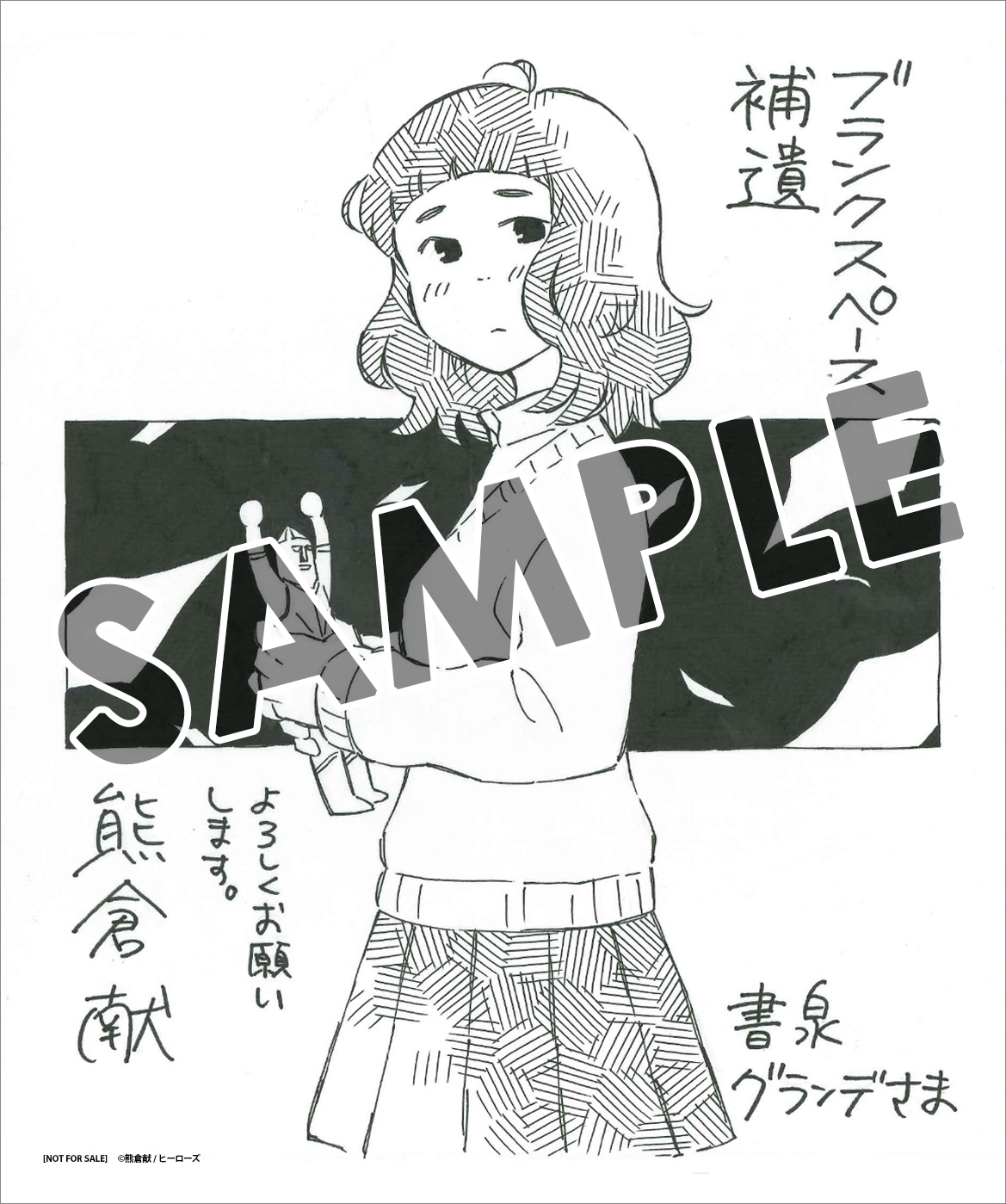書泉グランデ様にて「『ブランクスペース補遺』発売記念フェア」を開催いたします。色紙の展示や熊倉献先生直筆サイン入り複製原画の抽選プレゼントに加え、購入特典として色紙イラストカードを配布いたします。