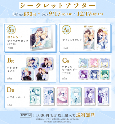 海王社×株式会社インクルーズが贈る「カワセルくじ 乙女部」最新作は、園瀬もち先生の「シークレットアフター」です。
