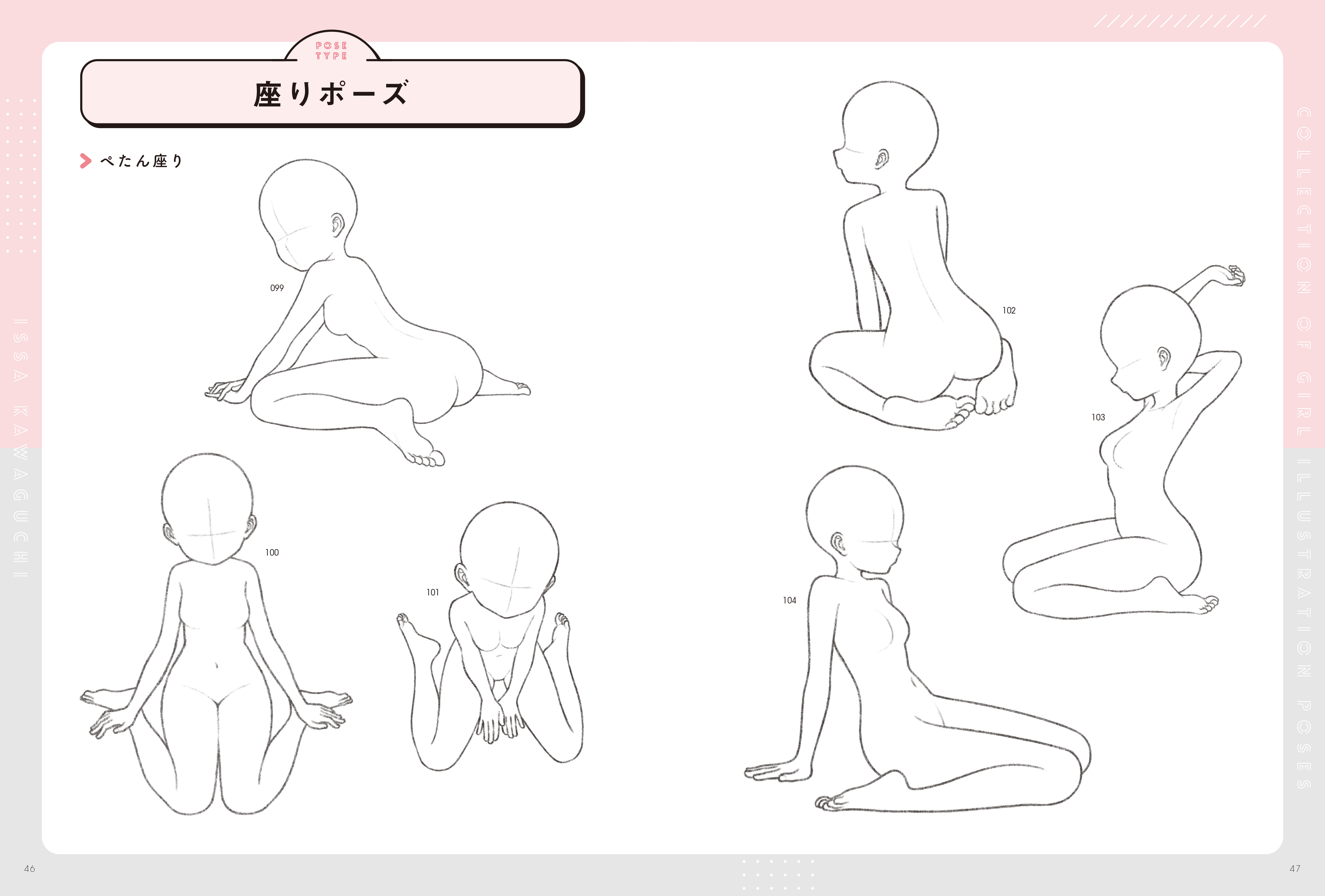 自然で愛らしいポーズの数々を、立ちポーズ・座りポーズ・寝そべり姿と……と分類しながら掲載しているので、描きたいイメージにぴったりのポーズがすぐに見つかります。
