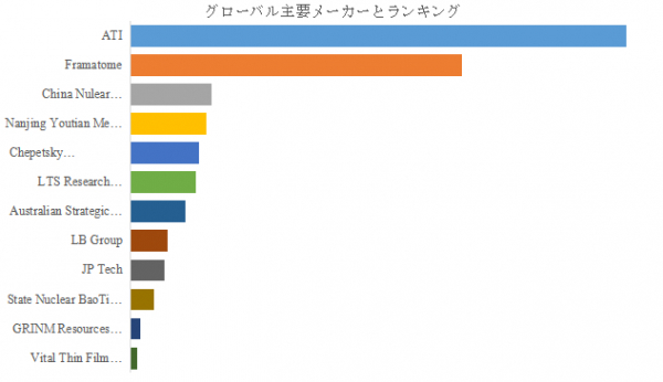 LP Informationのトップ企業研究センターによると、ハフニウム酸化物の世界的な主要製造業者には、ATI、Framatome、China Nulear JingHuan Zirconium Industry、Nanjing Youtian Metal Technology、Chepetsky Mechanical Plant、LTS Research Laboratories、Australian Strategic Materials (ASM)、LB Group、JP Tech、State Nuclear BaoTi Zirconium Industryなどが含まれている。2024年、世界のトップ5企業は売上の観点から約80.0%の市場シェアを持っていた。