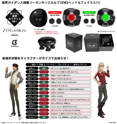 本コラボレーションモデルは、本体天面に各キャラクターのモチーフアイコン、作品ロゴを配置。「鏑木・T・虎徹」と「バーナビー・ブルックス Jr.」の掛け合い録り下ろしボイスを搭載。電源オンやオフ、Scalpモード、Faceモード、回転レベル、EMS等、各操作に応じてガイドしてくれるオリジナルボイス計15ワードを楽しみながら頭皮や表情筋のケアが可能です。