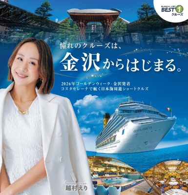 ベストワンクルーズが主催する金沢発着「コスタセレーナ」チャータークルーズの公式アンバサダーに石川県出身の地元タレント、越村えりさんを起用しました。