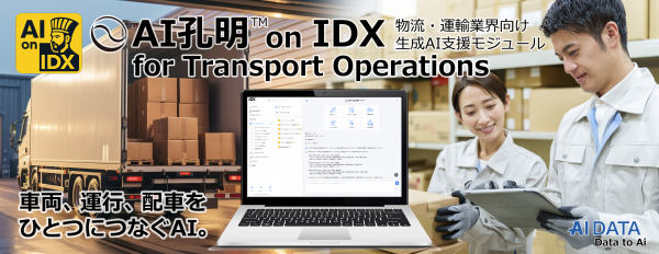 企業データとAIの利活用カンパニー、AIデータ株式会社(本社:東京都港区、代表取締役社長 佐々木隆仁、以下AIデータ社)は、次世代AIプラットフォーム「AI孔明 on IDX」を運輸・配送業務に最適化し、 車両動態管理・積載計画・ルート分析などを支援するモジュールとして、『AI孔明 on IDX for Transport Operations』 をリリースいたしました。
