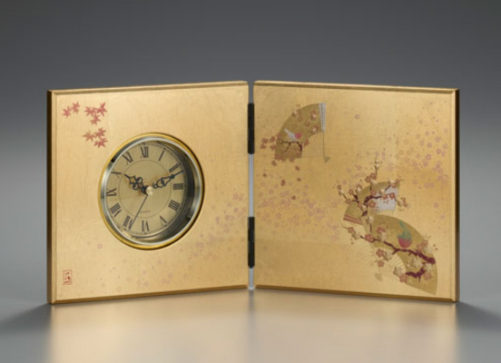 伝統の金沢箔を贅沢にあしらった屏風型の置時計です。職人の手で一枚一枚丹念に貼り上げられた箔は、光の加減で表情を変え、空間に華やぎと落ち着きを添えます。屏風をモチーフにしたデザインは、日本文化の象徴である「雅」と「和」を感じさせ、実用品である時計に工芸品としての価値を兼ね備えた逸品です。結婚や新築など慶事の贈答品はもちろん、周年記念や表彰といった法人ギフトとしても最適。国内外の大切なお客様や取引先に、日本の伝統美と品格を伝えることができる特別なギフトです。