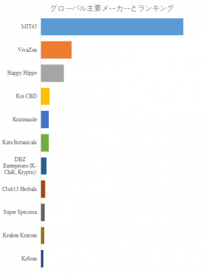 LP Informationのトップ企業研究センターによると、クラトム抽出物の世界的な主要製造業者には、MIT45、VivaZen、Happy Hippo、Koi CBD、Kratomade、Kats Botanicals、Club13 Herbals、DBZ Enterprises (K-Chill, Kryptic)、Super Speciosa、Kraken Kratomなどが含まれている。2024年、世界のトップ10企業は売上の観点から約58.0%の市場シェアを持っていた。