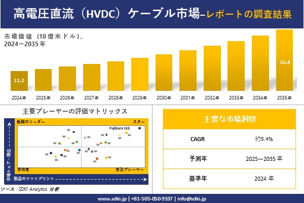 SDKI Analytics(本社:東京都渋谷区)は、このたび、2025年09月19に「高電圧直流(HVDC)ケーブル市場調査レポート:2025-2035年の市場規模、シェア、傾向の予測」を発表しました。高電圧直流(HVDC)ケーブルに関する市場調査レポートには、統計的および分析的アプローチを使用した予測評価が含まれています。この調査レポートでは、一次および二次調査方法を使用して分析された主要な業界洞察を通じて将来の傾向を理解できるようにすることで、主要な市場動向を読者に説明しています。
