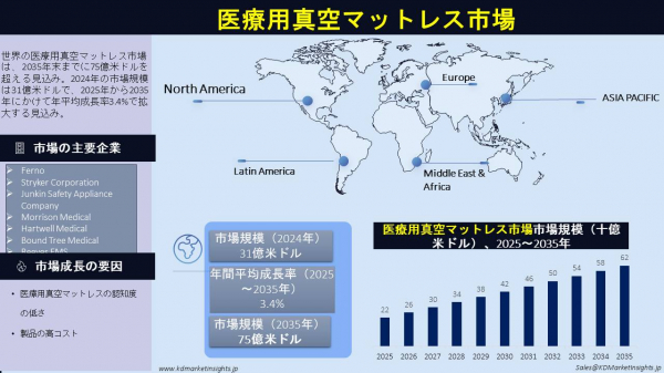完全なリサーチレポートはこちら@ https://www.kdmarketinsights.jp/report-analysis/medical-vacuum-mattress-market/596