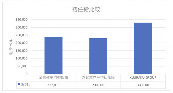 新卒初任給33万円は、外食業界平均の1.43倍、全産業平均の1.39倍に相当します(出典:厚生労働省「令和5年賃金構造基本統計調査」)。この給与改定により社員平均年収は約670万円となり全業種平均460万円の1.45倍(出典:国税庁「令和5年分 民間給与統計調査」)、居酒屋業界平均409万円に対して1.63倍となります。(出典:「求人ボックス 給与ナビ」)また3年以内に社員平均年収を700万円にする方針です。
