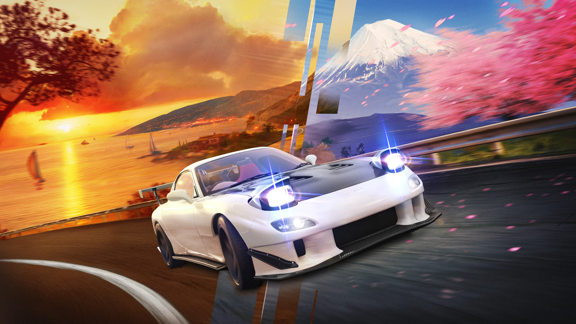 本作ではアドレナリン全開のドライビング体験を提供。日本の山道からコート・ダジュールの美しい海岸線まで、50種類のコースで40台の名マシンを乗りこなそう。