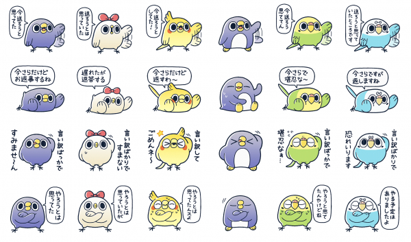 今回のテーマは“言い訳”。怠けに怠けた「めんトリ」たちが必死に”言い訳”をするスタンプが、キャラクター別の全6種にて登場。「めんトリ」ファンの皆さまへ、ちょっとした笑いと癒しをお届けいたします。