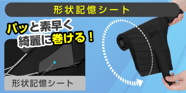 ◎形状記憶シート :形状記憶シートの形に沿って素早く、綺麗に巻いて収納でき、シワにならずに美しい。