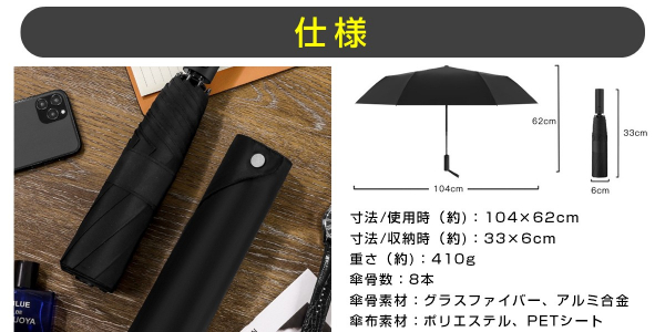 Parabrella104(パラブレラ104)は、形状記憶シートを採用した直径104cmのワイドサイズ折りたたみ傘で、クルクル巻いてもシワにならず美しく収納でき、片手で操作できる自動開閉式で手でシャフトを収納して混雑時や荷物の多いシーンでも快適に使え、さらに晴雨兼用のUVカット仕様で日差しや突然の豪雨からもあなたと荷物をしっかり守り、ビジネスにもカジュアルにも馴染むスマートなデザインと軽量・コンパクト設計で365日携帯できる、日常に安心感と使いやすさをもたらす次世代の傘です。